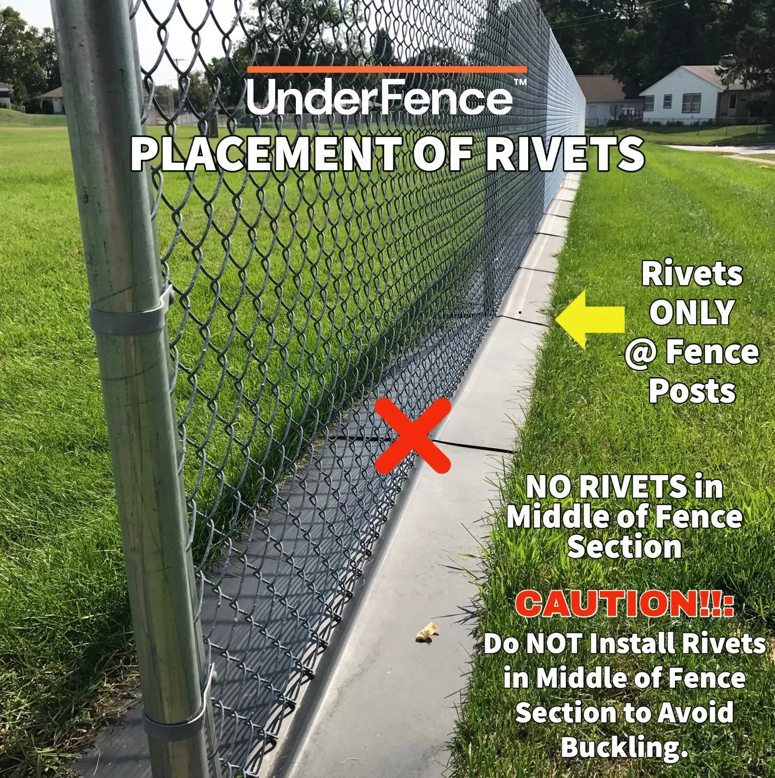 If rivets are installed in the middle of each fence section, it can lead to buckling as the mow strip panels are designed to expand/contract when there are changes in temperature, etc.